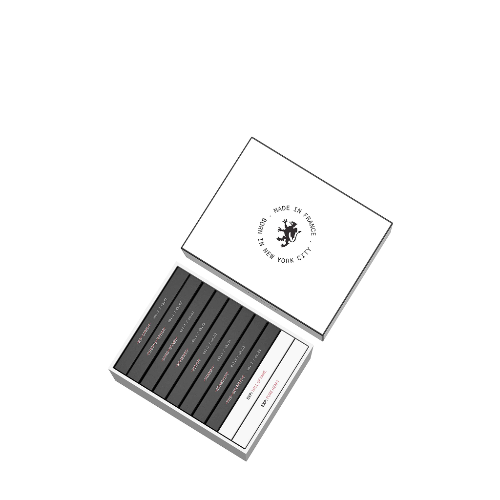 - Curated Collection: Sample ten unique fragrances— AD LUMEN, CHEF'S TABLE, LONG BOARD, MOMENTO, PLUSH, SHAMAN, STARDUST, THE BOTANIST, HALL OF FAME, PURE HEART.—in convenient 2ml vials.