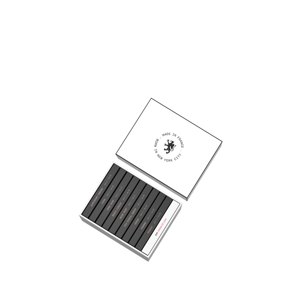 • Curated Collection of ten distinct fragrances—ASTRONOMY DOMINE, CODA, DUNE ROAD, MAGIC CIRCUS, MOON DUST, OLD SCHOOL BENCH, ONSEN, SHAMAN, VOODOO, ORIGIN OF LOVE.—explore in convenient 2ml vials.