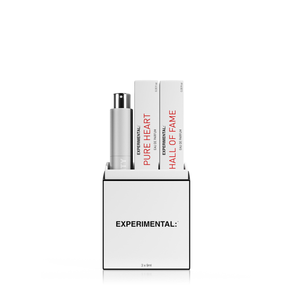 A presentation box containing three iconic scents: PURE HEART, HALL OF FAME and FIRST TIME housed in 9ml vials, designed to use with MiN NEW YORK's functional and timeless travel case - lightweight and with our signature logo.